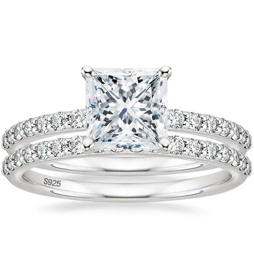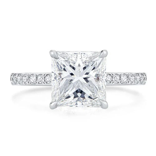 Cathedral Princess Cut Moissanite Pave Engagement Ring