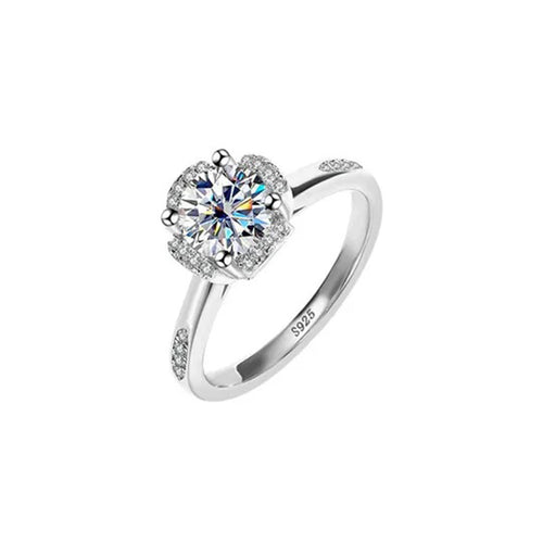 Classic Solitaire Moissanite Four-Prong Sterling Silver Engagement Ring