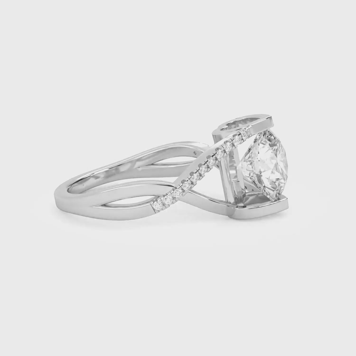 The Elynora Engagement Ring is a refined expression of modern romance — designed for those who love elegance with a distinctive edge. At its heart sits a brilliant round center stone, elevated by a graceful open-crossover band that flows effortlessly around the finger.